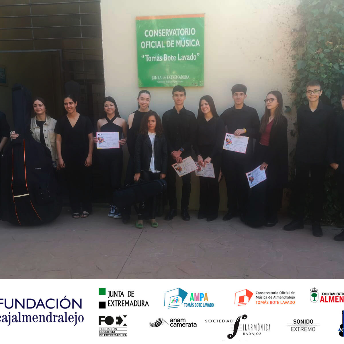 Nos complace anunciar los ganadores del la XXII Edición del Concurso de Jóvenes Músicos «Ciudad de Almendralejo. En nombre de la AMPA y del Equipo Directivo del Conservatorio Oficial de Música de Almendralejo damos nuestra más sincera enhorabuena a tod@s los premiados, y agradecemos sinceramente el apoyo incondicional de la Cajalmendralejo por la dotación de los premios concedidos y a las instituciones que colaboran con el Concurso: El Excmo. Ayuntamiento de Almendralejo, la Sociedad Filarmónica de Badajoz, la Fundación de la Orquesta de Extremadura, ANAM Camerata, El Ensemble «Sonido Extremo» y Aguicex.
